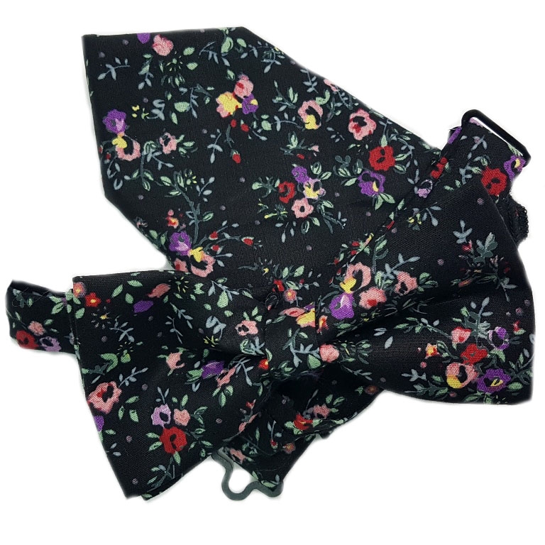Μαύρο παπιγιόν και μαντηλάκι τσέπης με πολύχρωμα λουλούδια