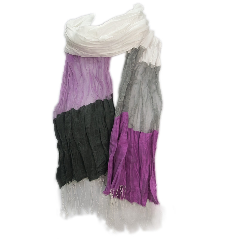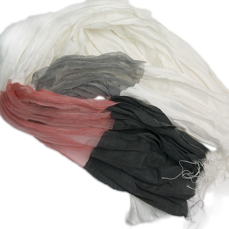 Λευκό Ιταλικό crashed φουλάρι με φαρδιές ρίγες και κρόσσια