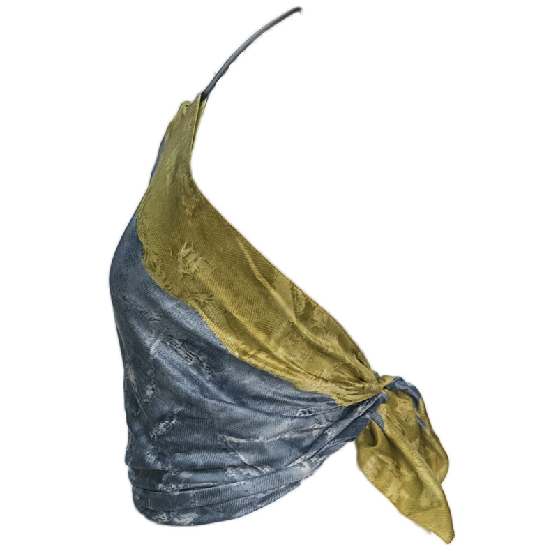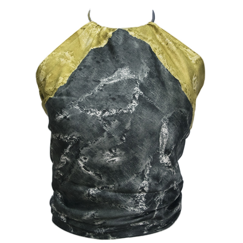 Ιταλικό γκρι σκούρο τοπ με mustard κίτρινο και jeans print