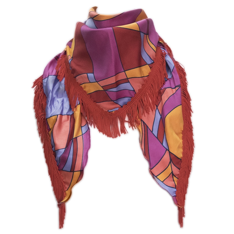 Τρίγωνο Ιταλικό σατέν φουλάρι με γραμμικό σχέδιο και κρόσσια