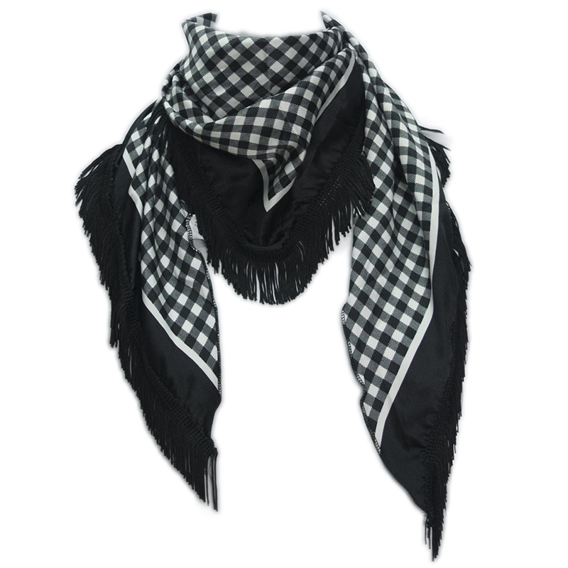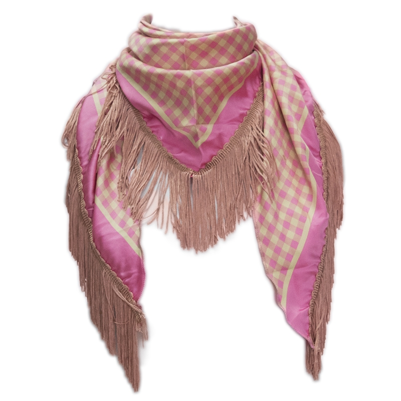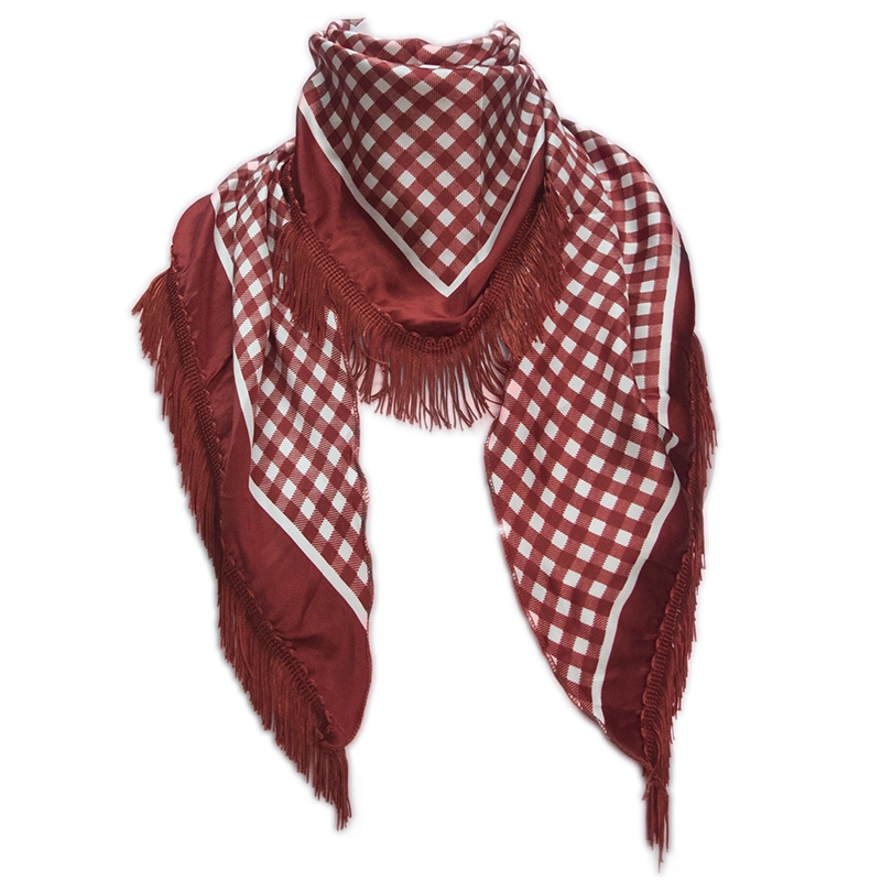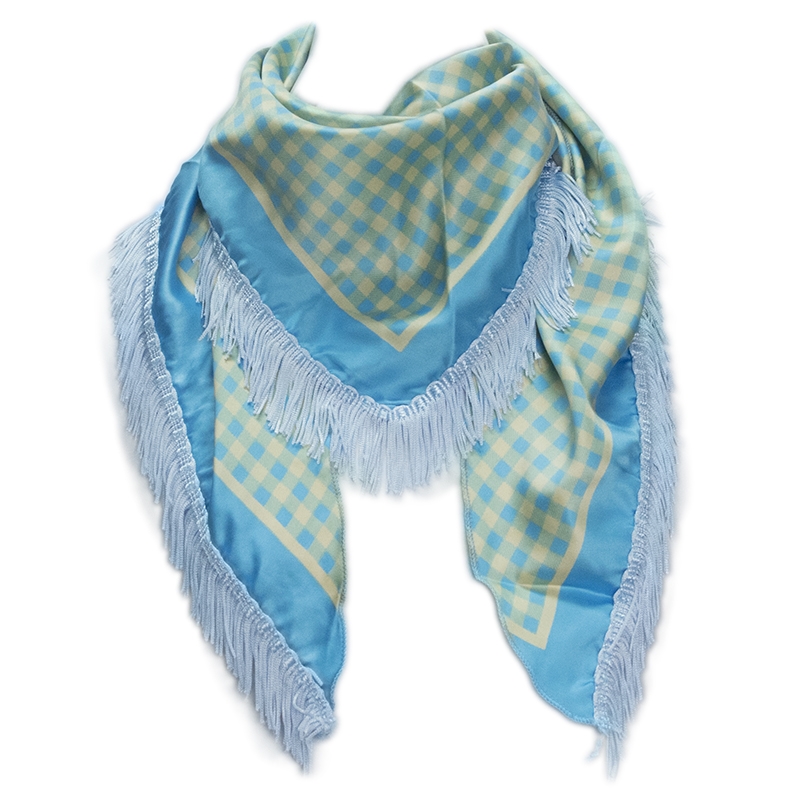 Τρίγωνο Ιταλικό σατέν καρό φουλάρι με κρόσσια