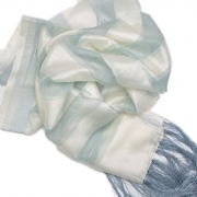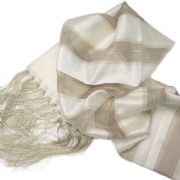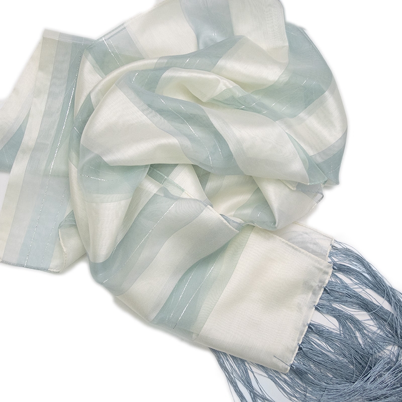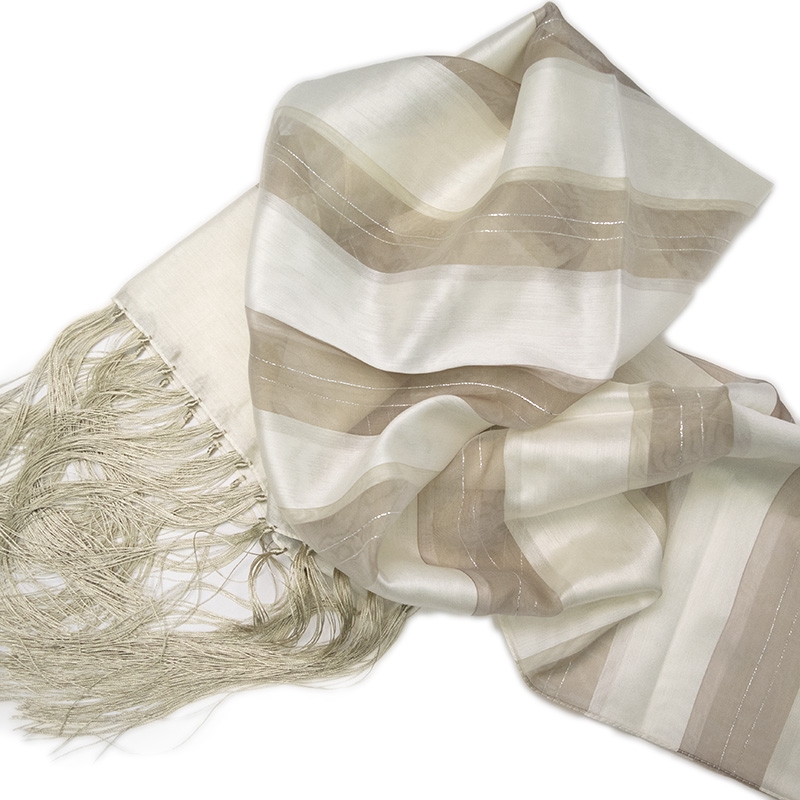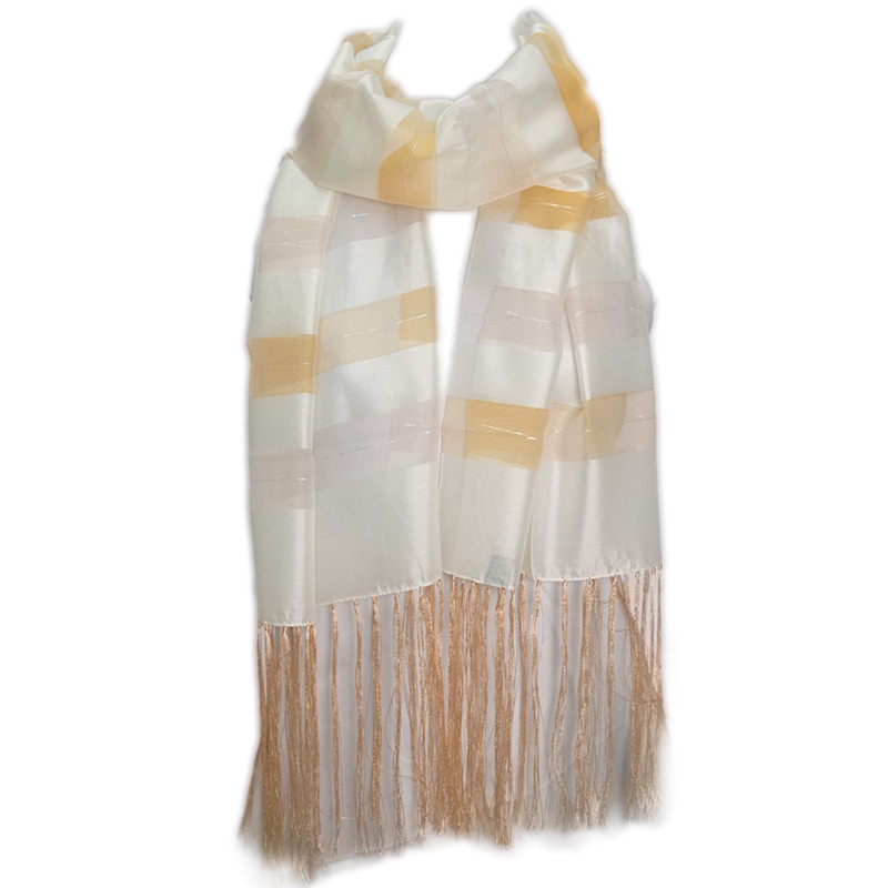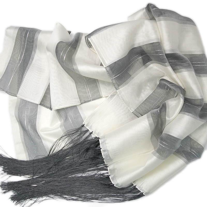 Λευκό Ιταλικό μεταξωτό φουλάρι με μακριά κρόσσια και ασημί lurex