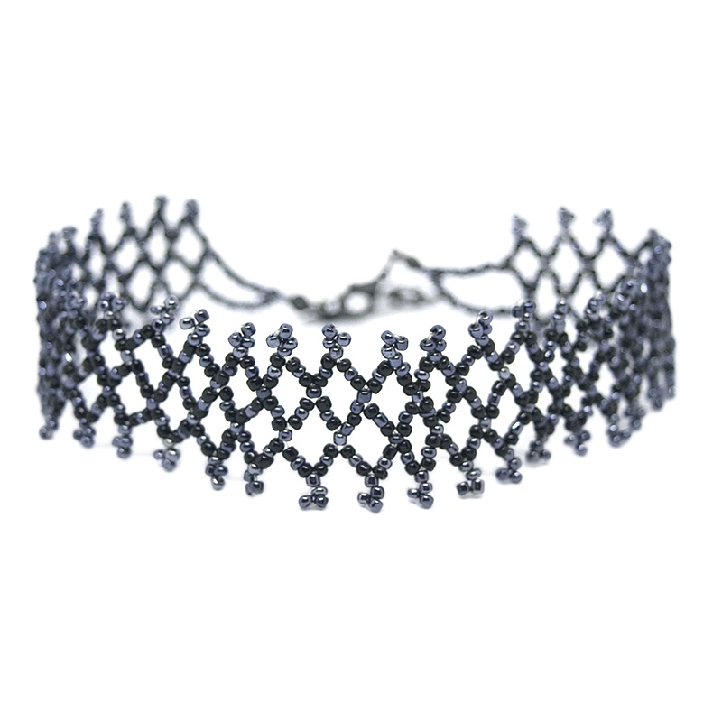 Γκρι τσόκερ με ρόμβους από χάντρες