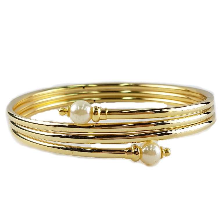Χρυσό βραχιόλι μπράτσου σπιράλ με περλίτσες