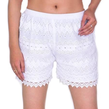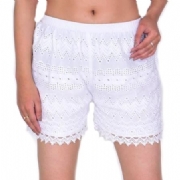 Λευκό Ινδικό βαμβακερό crochet σορτς Abstract