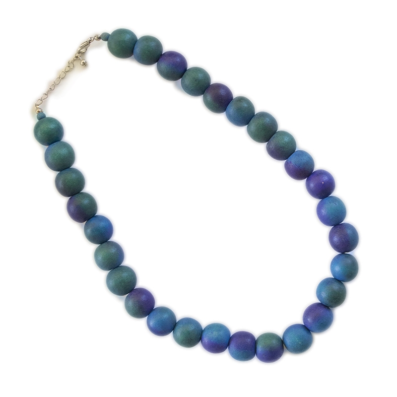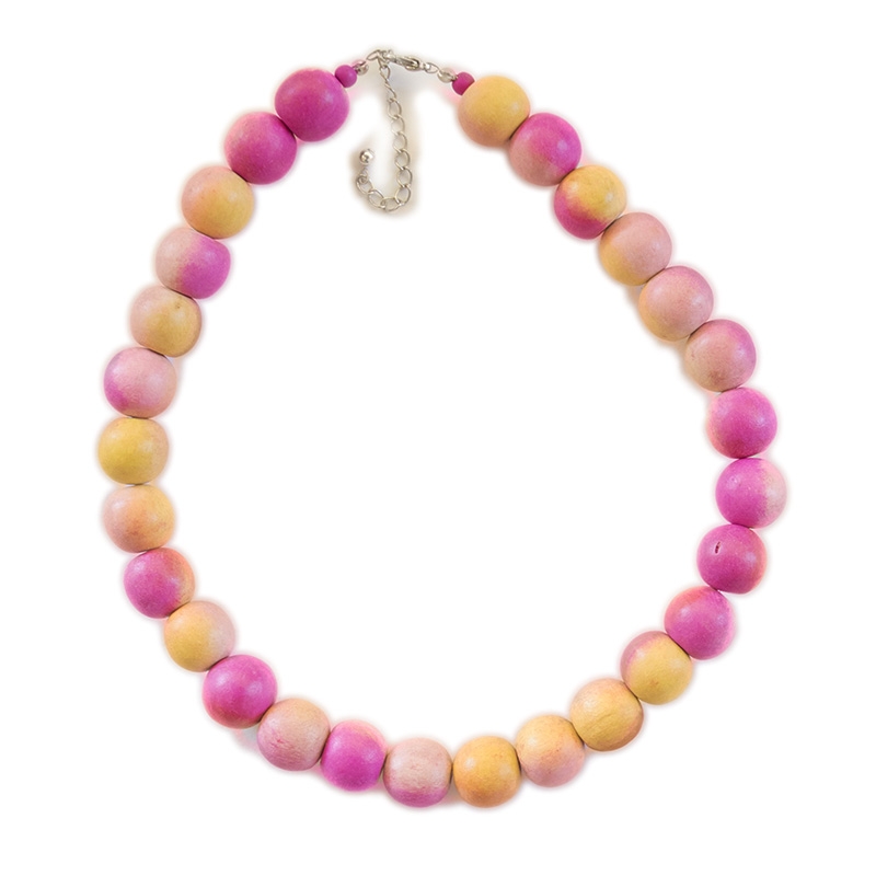 Κοντό κολιέ με ombre ξύλινες χάντρες
