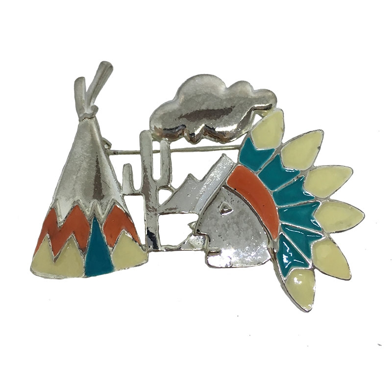 Ethnik καρφίτσα με Ινδιάνο και σκηνή από σμάλτο