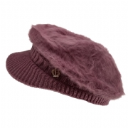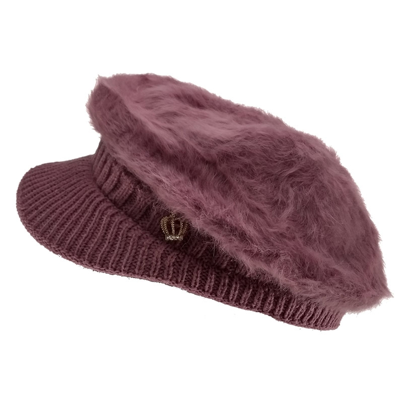 Μονόχρωμη γούνινη τραγιάσκα με καρφίτσα κορώνα