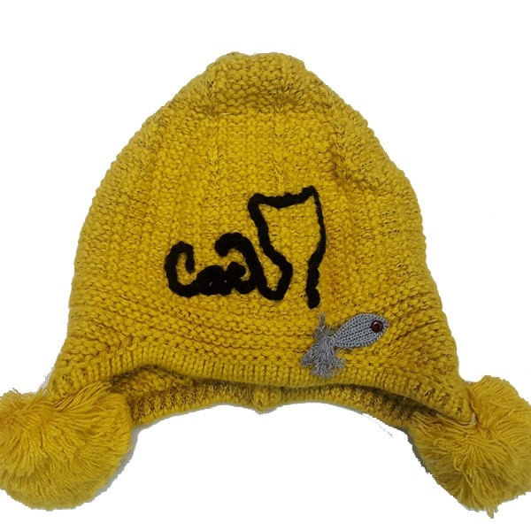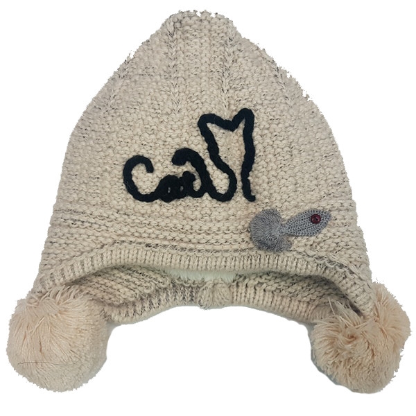 Παιδικός πλεκτός σκούφος με γάτα και ψαράκι