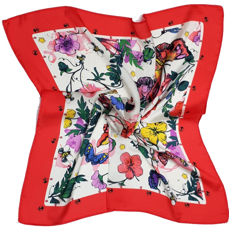 Λευκό και κόκκινο floral μαντήλι λαιμού με μετάξι