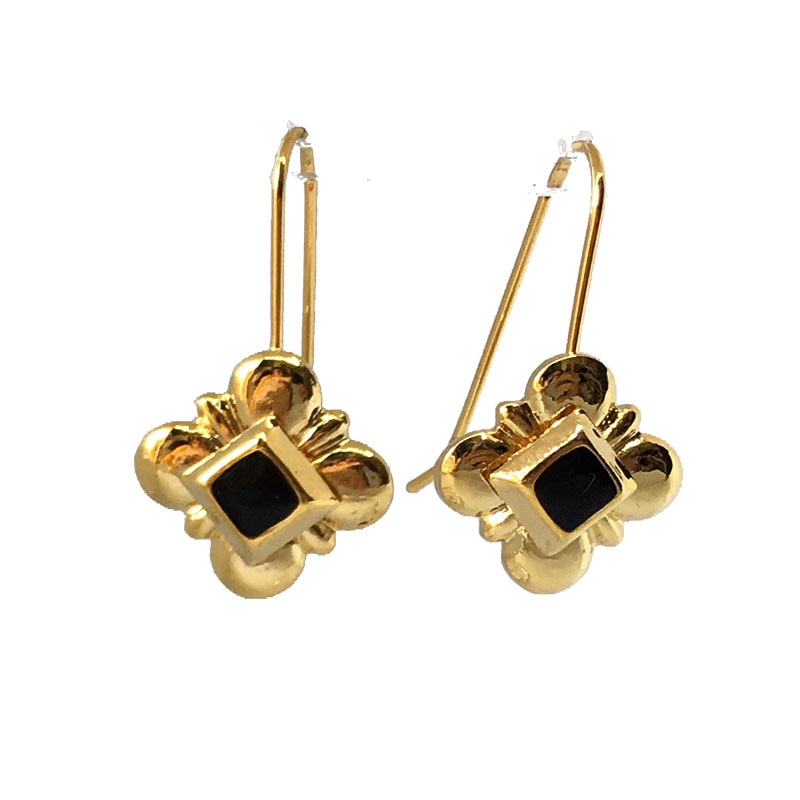 Χρυσά λεπτά σκουλαρίκια με κρεμαστούς ρόμβους από μαύρο σμάλτο