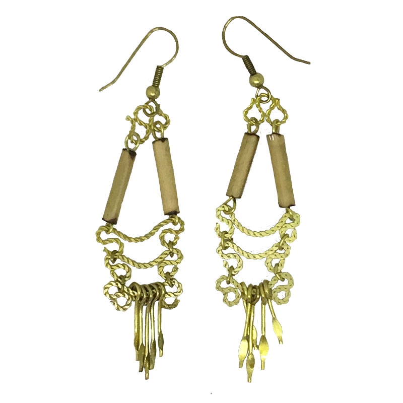 Retro χρυσά ματ σκουλαρίκια Alice με bamboo λεπτομέρειες