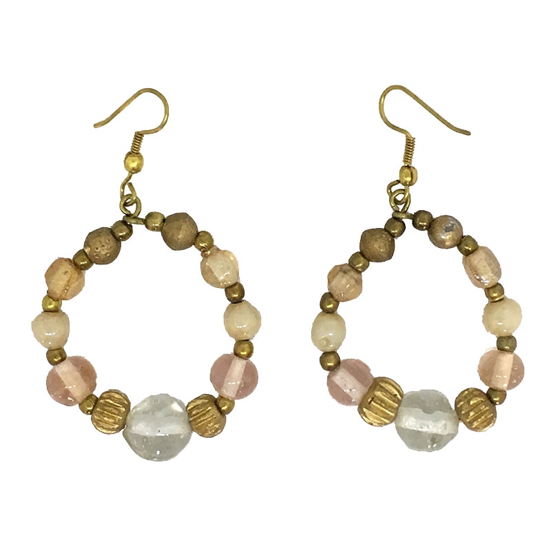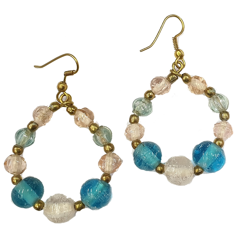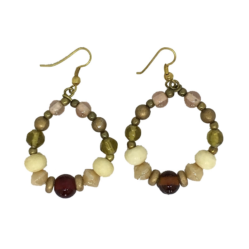 Κρεμαστοί κρίκοι σκουλαρίκια με πολύχρωμες πέτρες και χάντρες