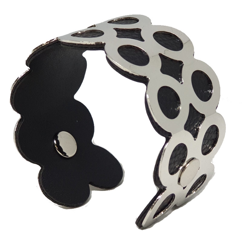 Μαύρο βραχιόλι croco με ασημί μεταλικό πλέγμα Hoops