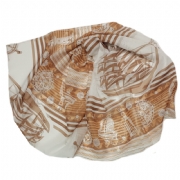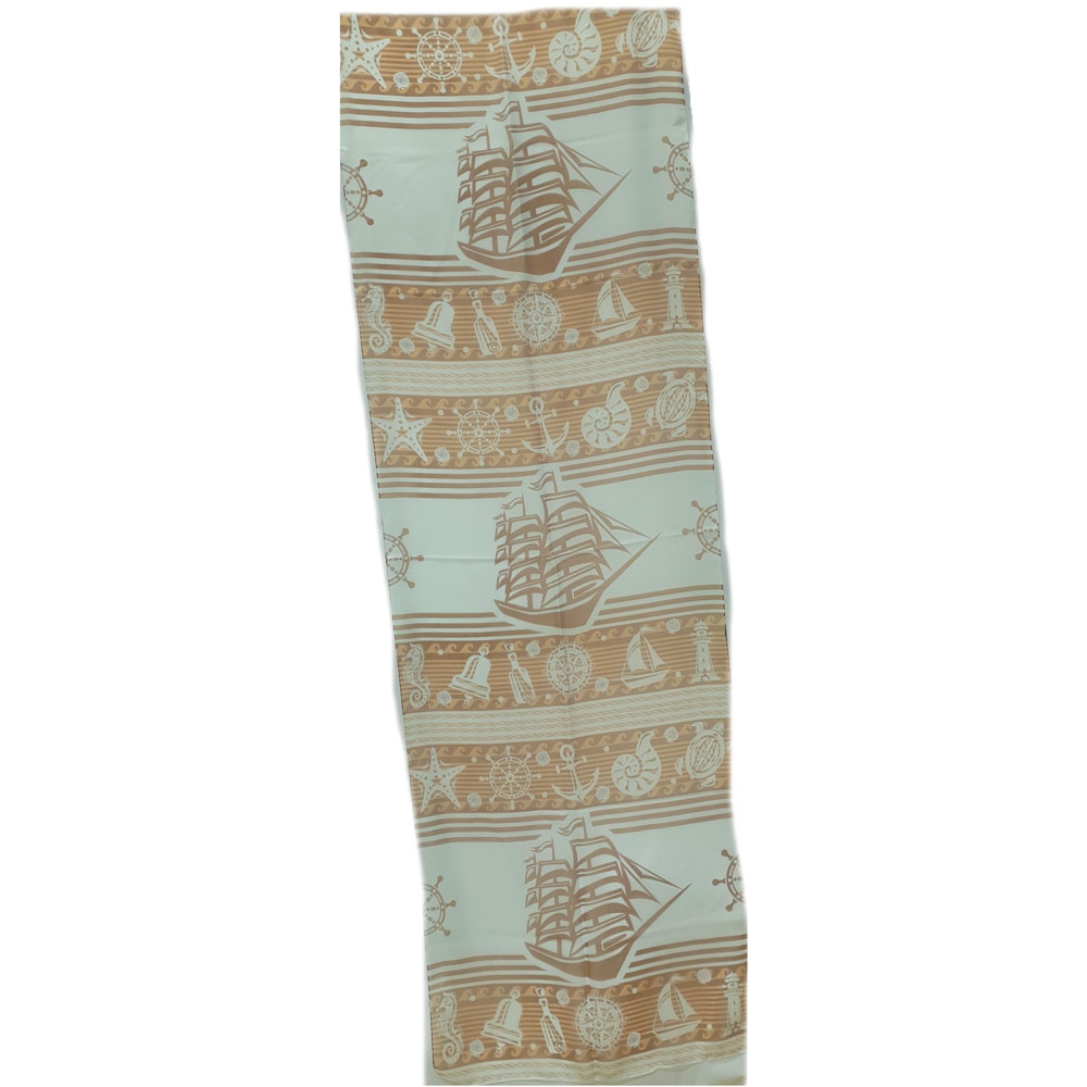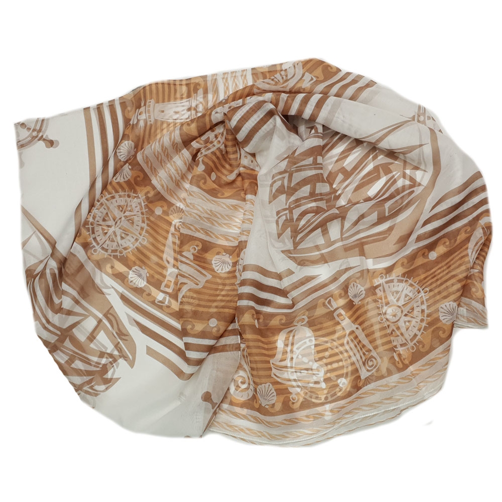 Λευκό και μελί Ιταλικό φαρδύ φουλάρι με καράβια