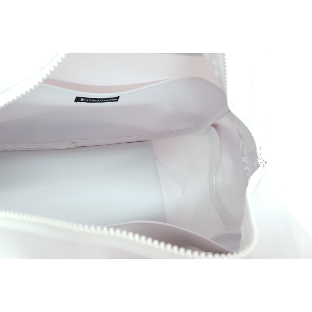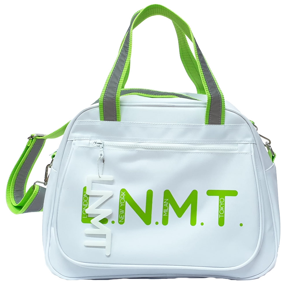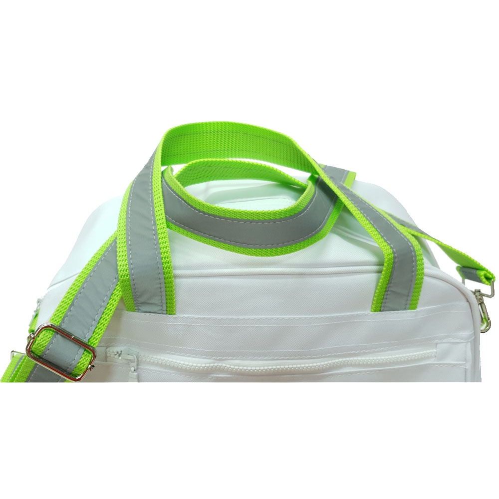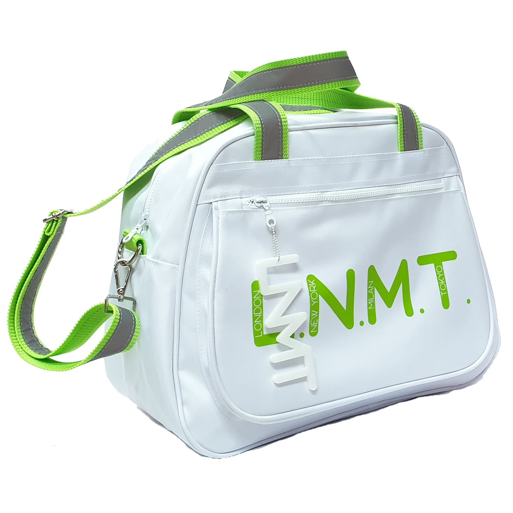 Μεγάλη λευκή τσάντα L.N.M.T. με lime ανακλαστικό ιμάντα