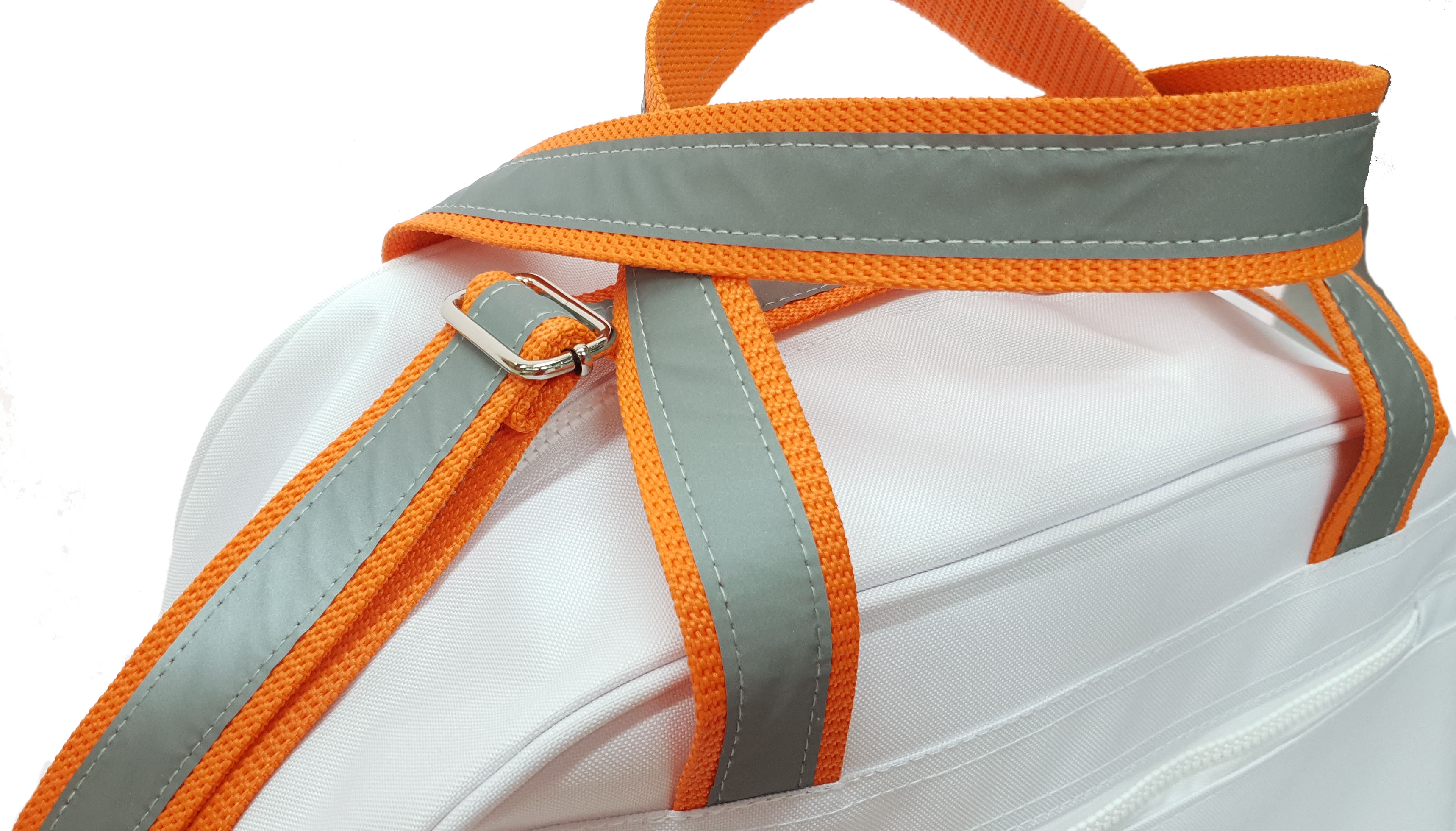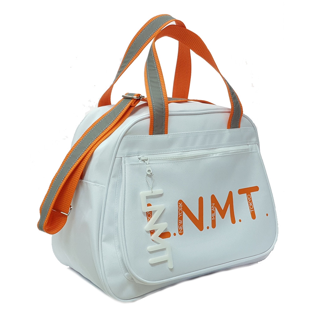 Μεγάλη λευκή τσάντα L.N.M.T. με πορτοκαλί ανακλαστικό ιμάντα