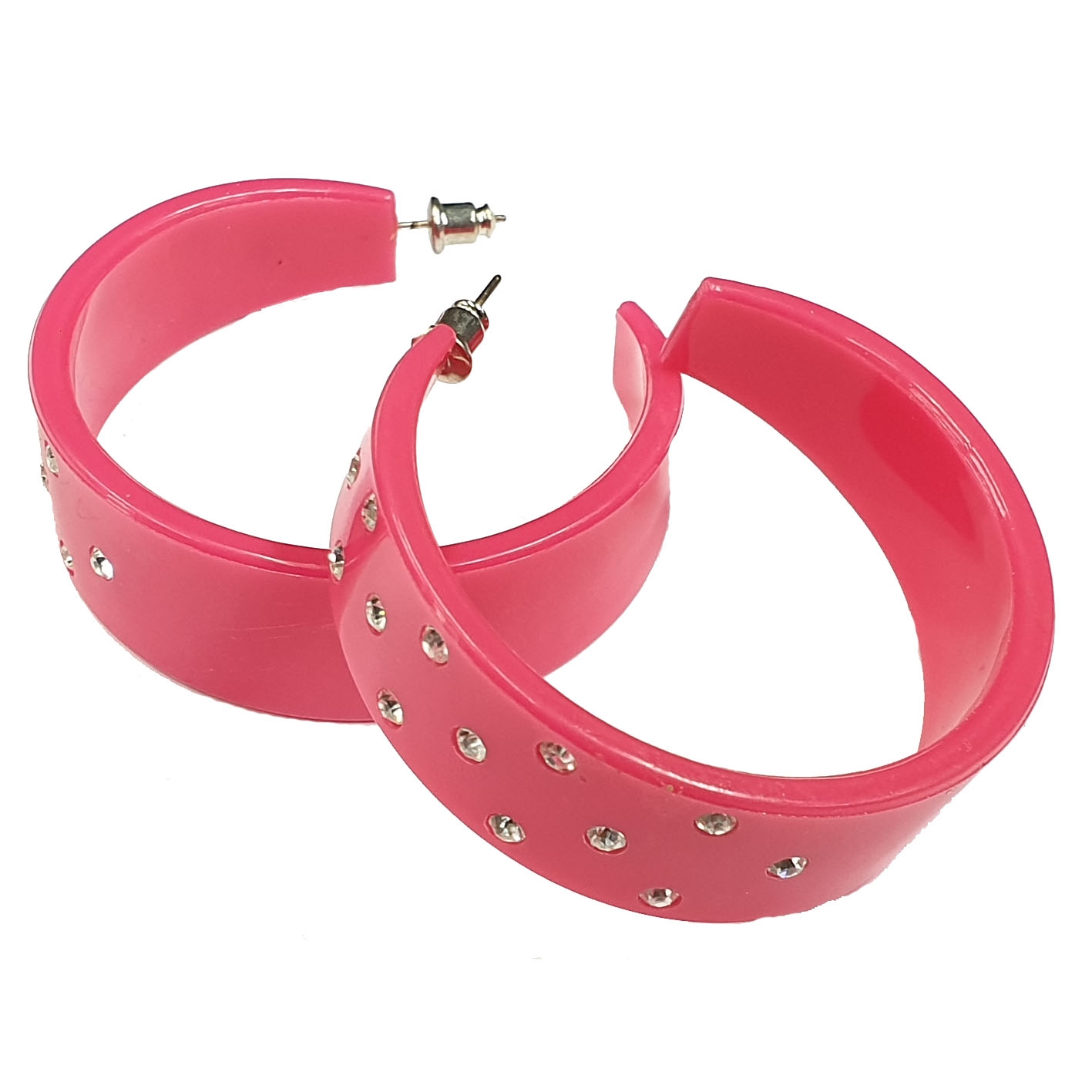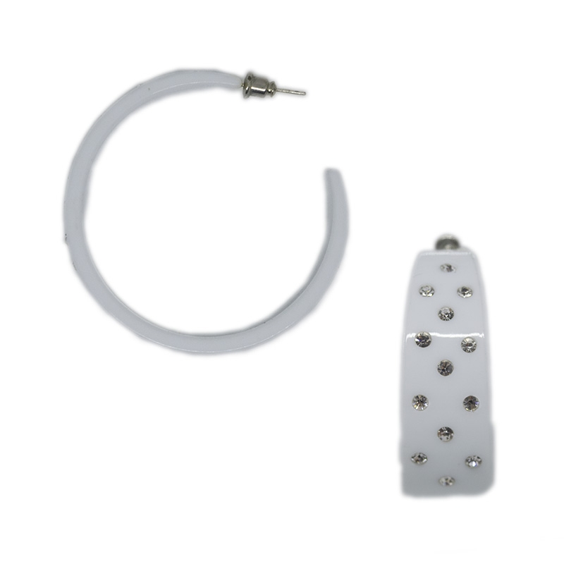 Λευκοί πλαστικοί μεγάλοι κρίκοι σκουλαρίκια με στρας
