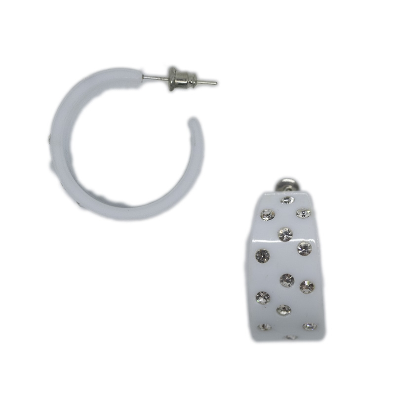 Λευκοί πλαστικοί μικροί κρίκοι σκουλαρίκια με στρας