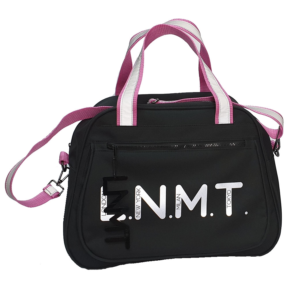 Μεγάλη μαύρη τσάντα L.N.M.T. με φουξ ανακλαστικό ιμάντα