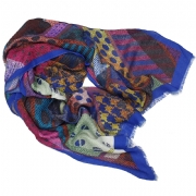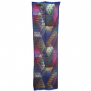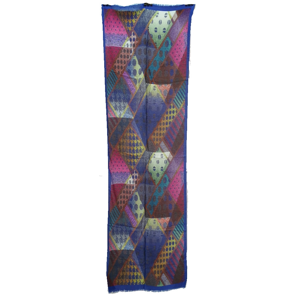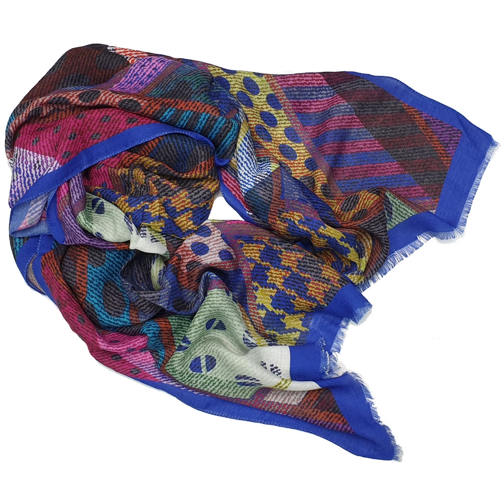 Indigo μπλε, δαμασκηνί και μουσταρδί Ιταλικό φουλάρι με πουά και Pied de Poule σχέδια