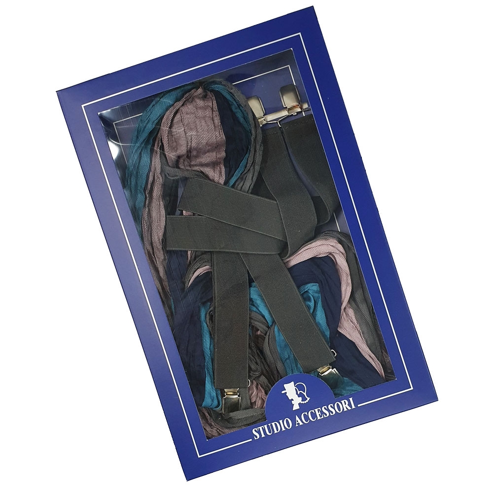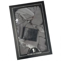 Σετ δώρου με ανδρικό ριγέ Ιταλικό φουλάρι και γκρι μονόχρωμες τιράντες