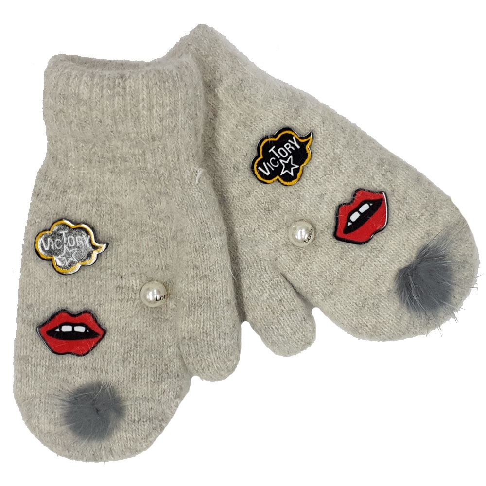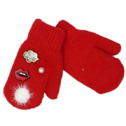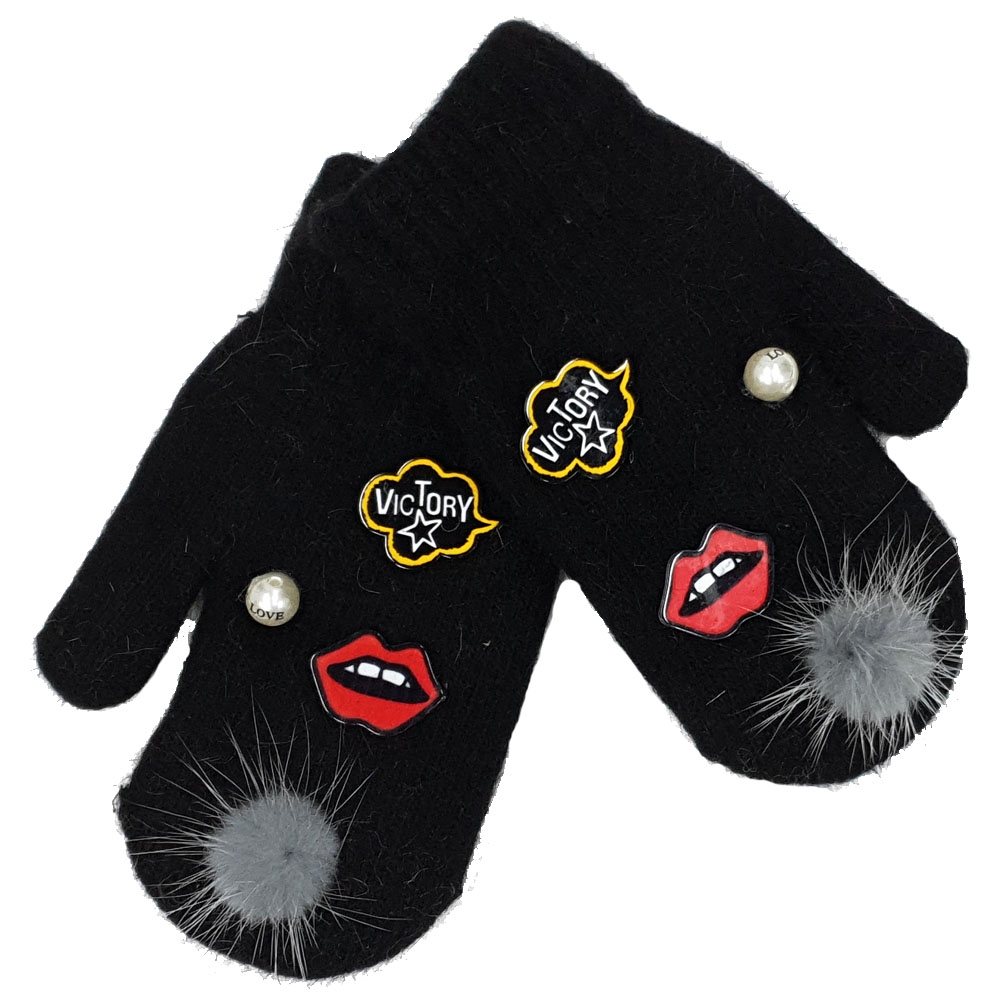 Παιδικά γάντια χούφτες με περλίτσες, χειλάκια και pom pom