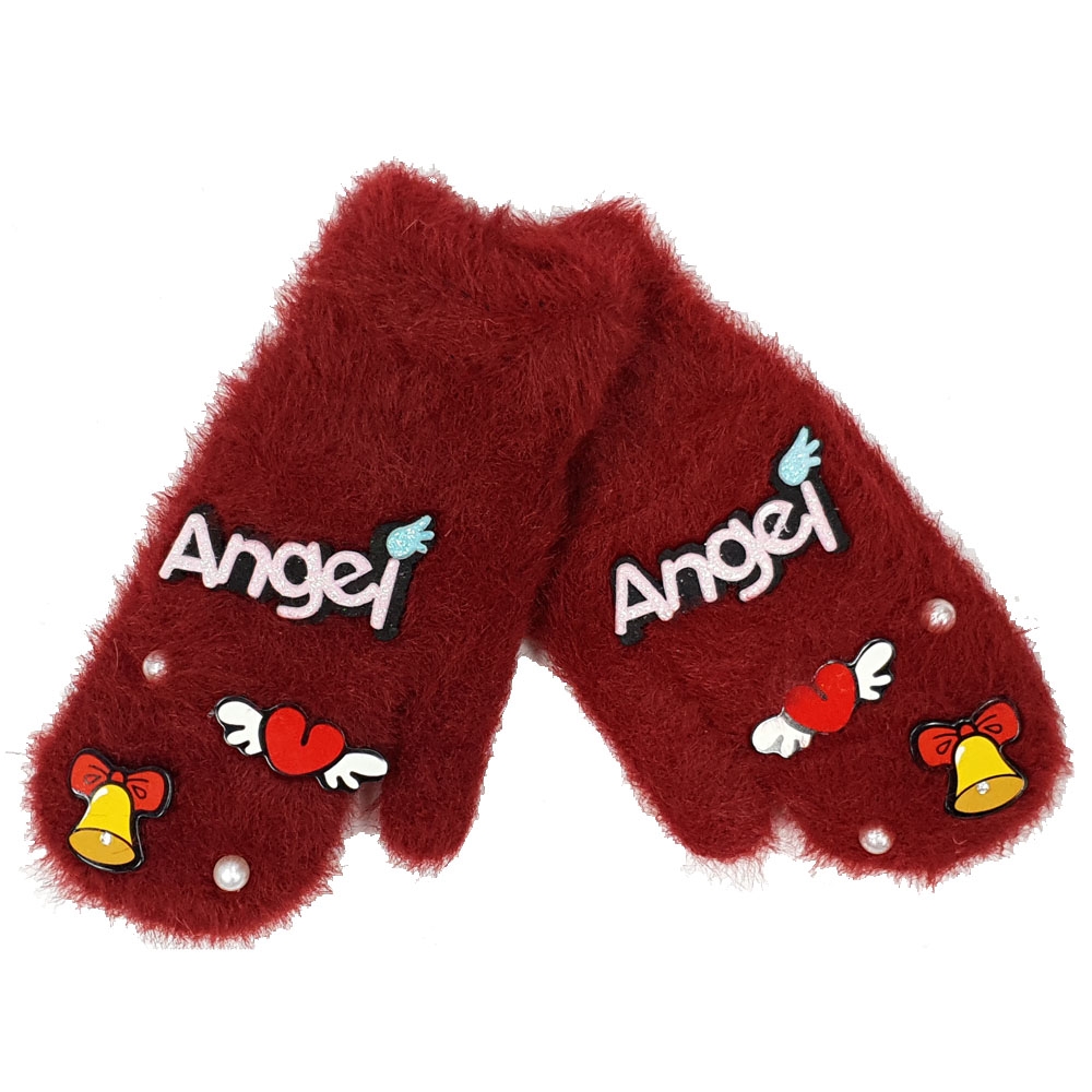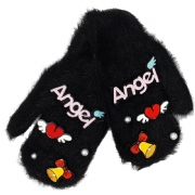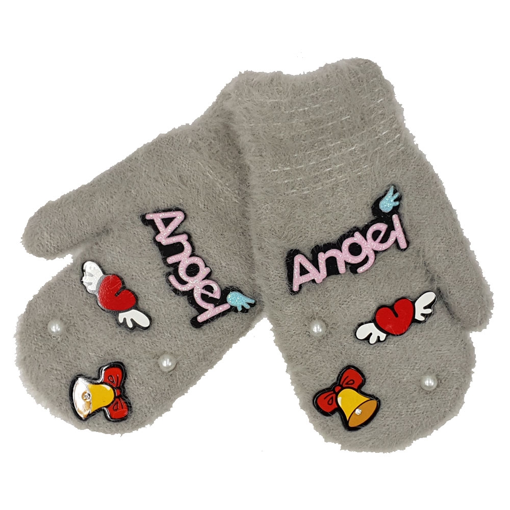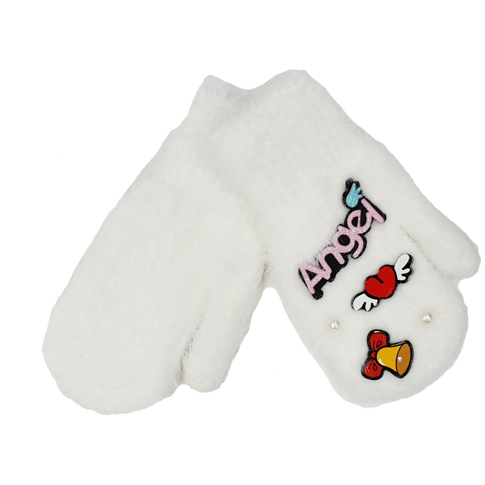 Παιδικά μαλλιαρά γάντια χούφτες Angels με περλίτσες και καρδούλες