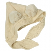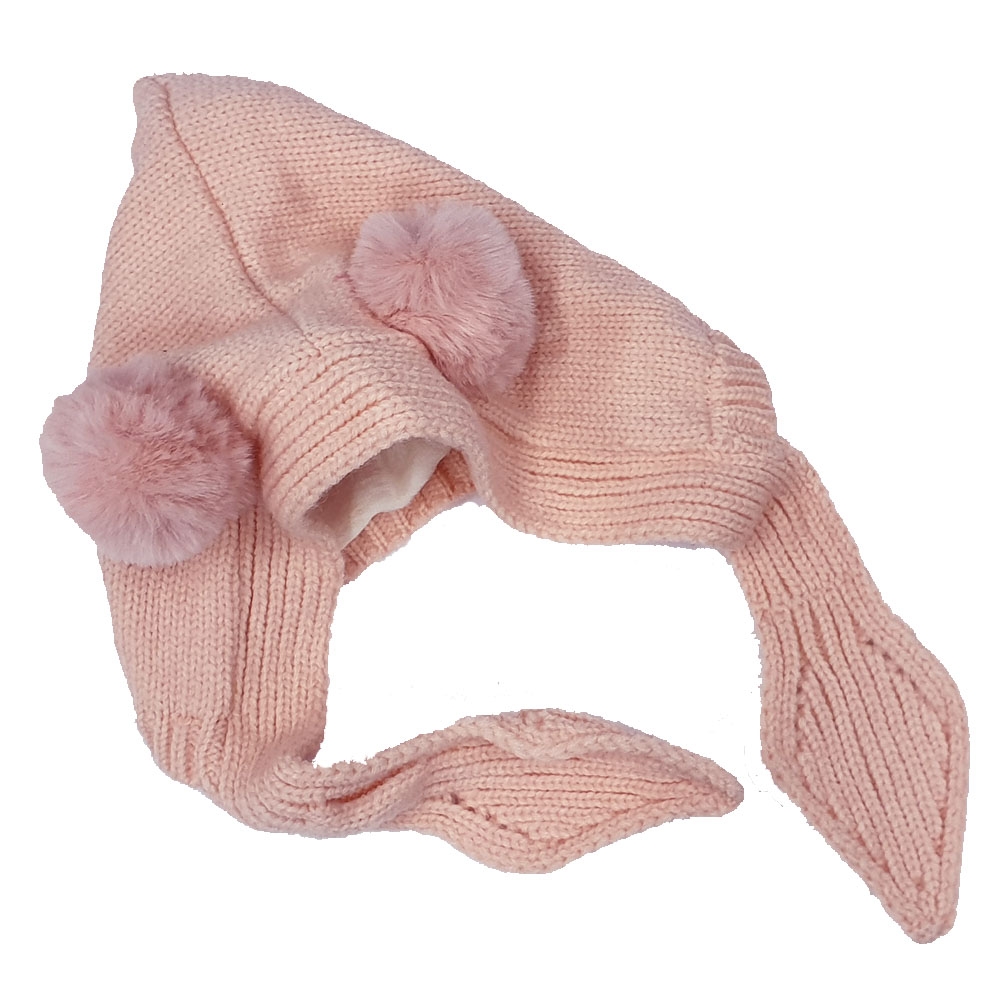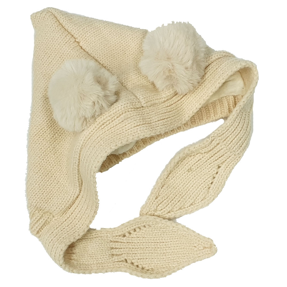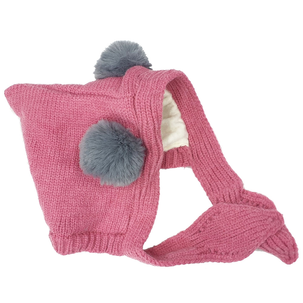 Μονόχρωμος πλεκτός παιδικός σκούφος με pom-pom και fleece επένδυση