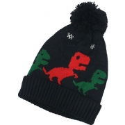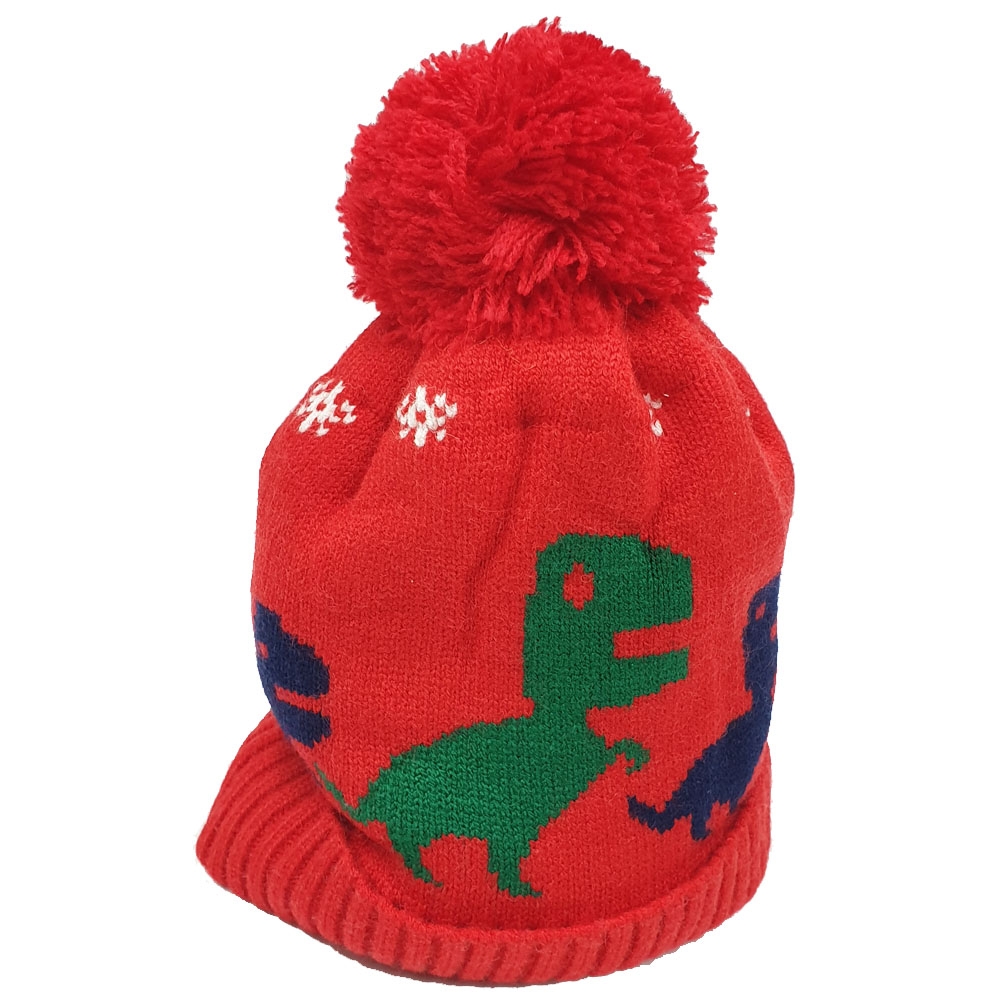 Βρεφικός σκούφος με φούντα και δεινόσαυρους με fleece επένδυση