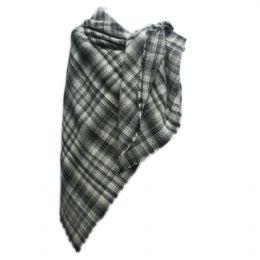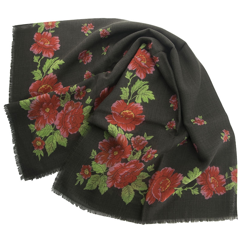 Τετράγωνη γκρι-καφέ Ιταλική μάλλινη μαντήλα με μεγάλα κόκκινα λουλούδια
