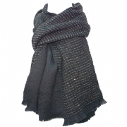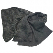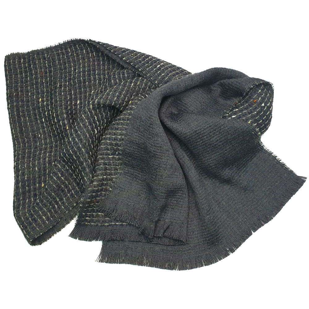 Ανθρακί μάλλινο Ιταλικό unisex κασκόλ διπλής όψης με εξώραφα εκρού νήματα