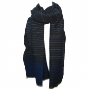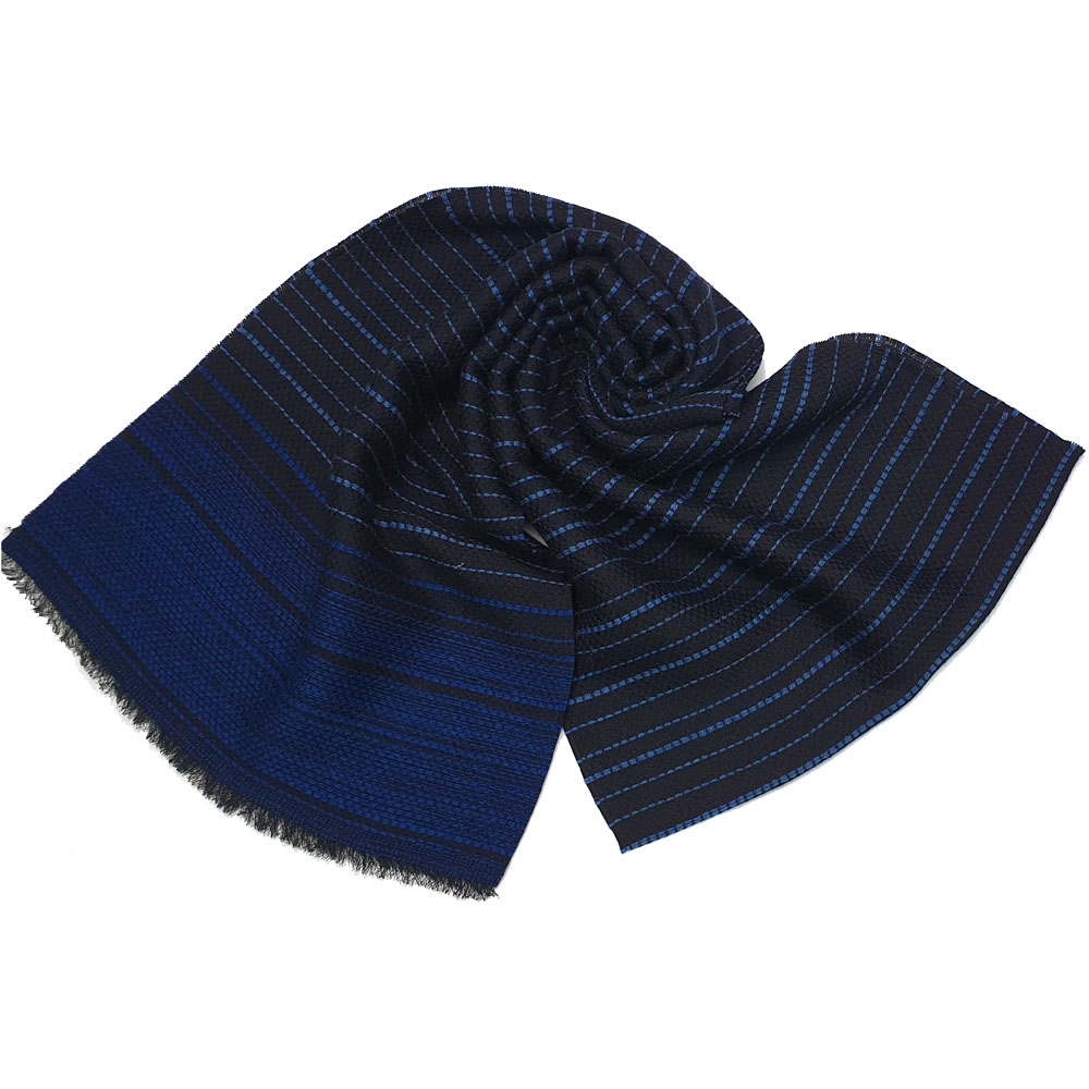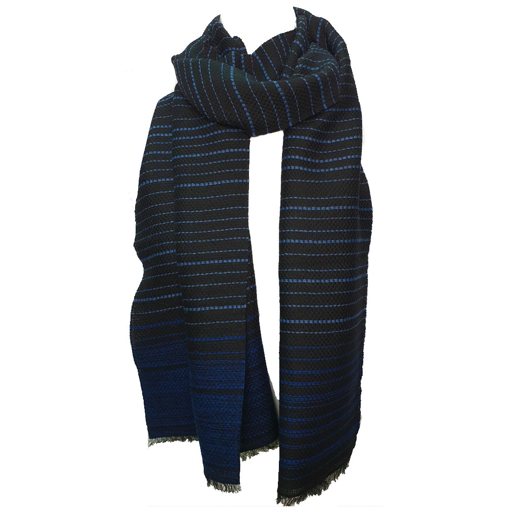 Μαύρο με μπλε royal οριζόντια νήματα μάλλινο Ιταλικό unisex φουλάρι