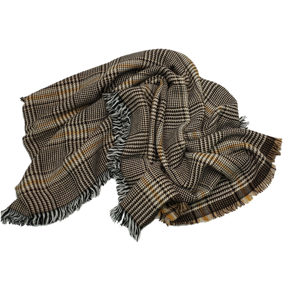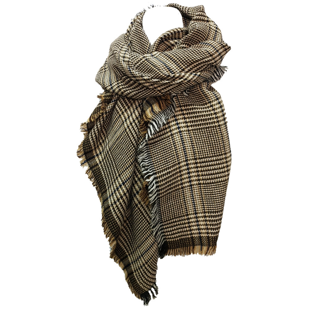Μπεζ Pied de poule Ιταλική εσάρπα με χρωματιστές ρίγες