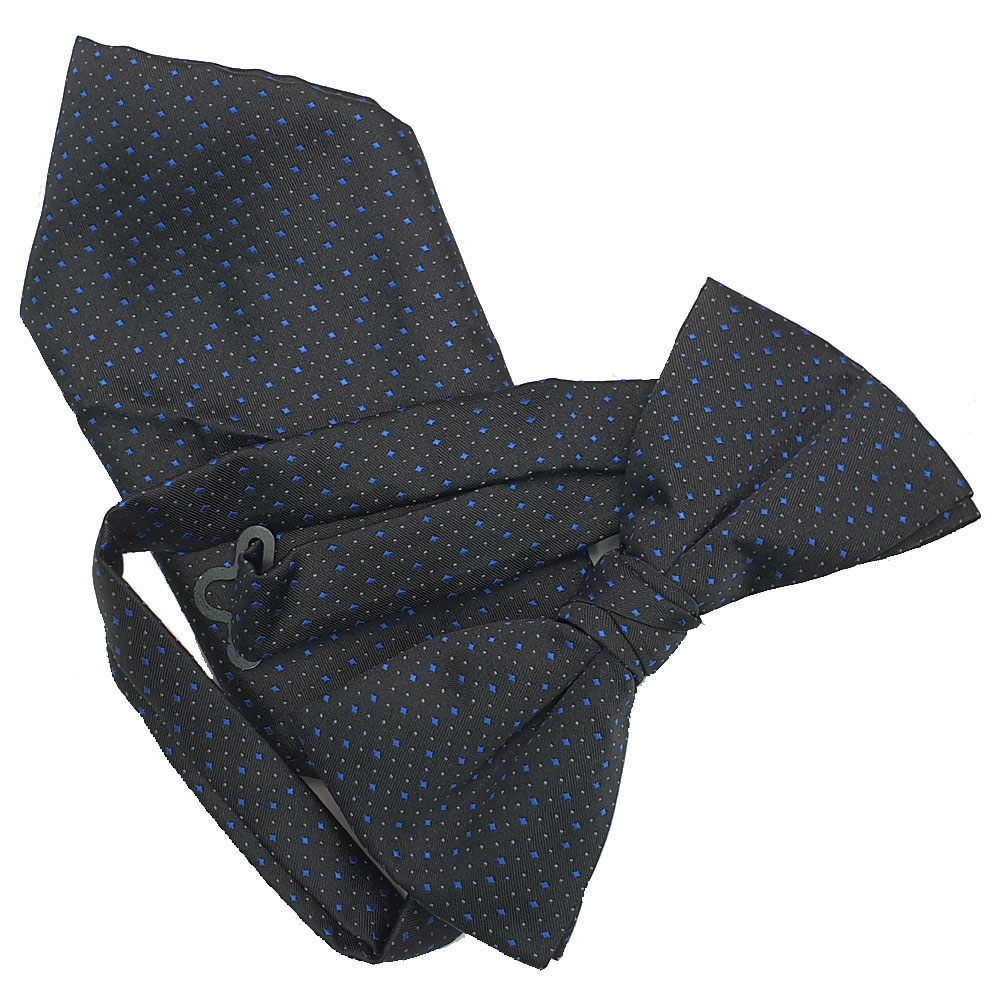 Μαύρο παπιγιόν και μαντηλάκι τσέπης με μπλε ρουά ρομβάκια και λευκά spots