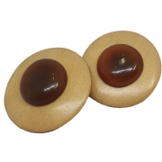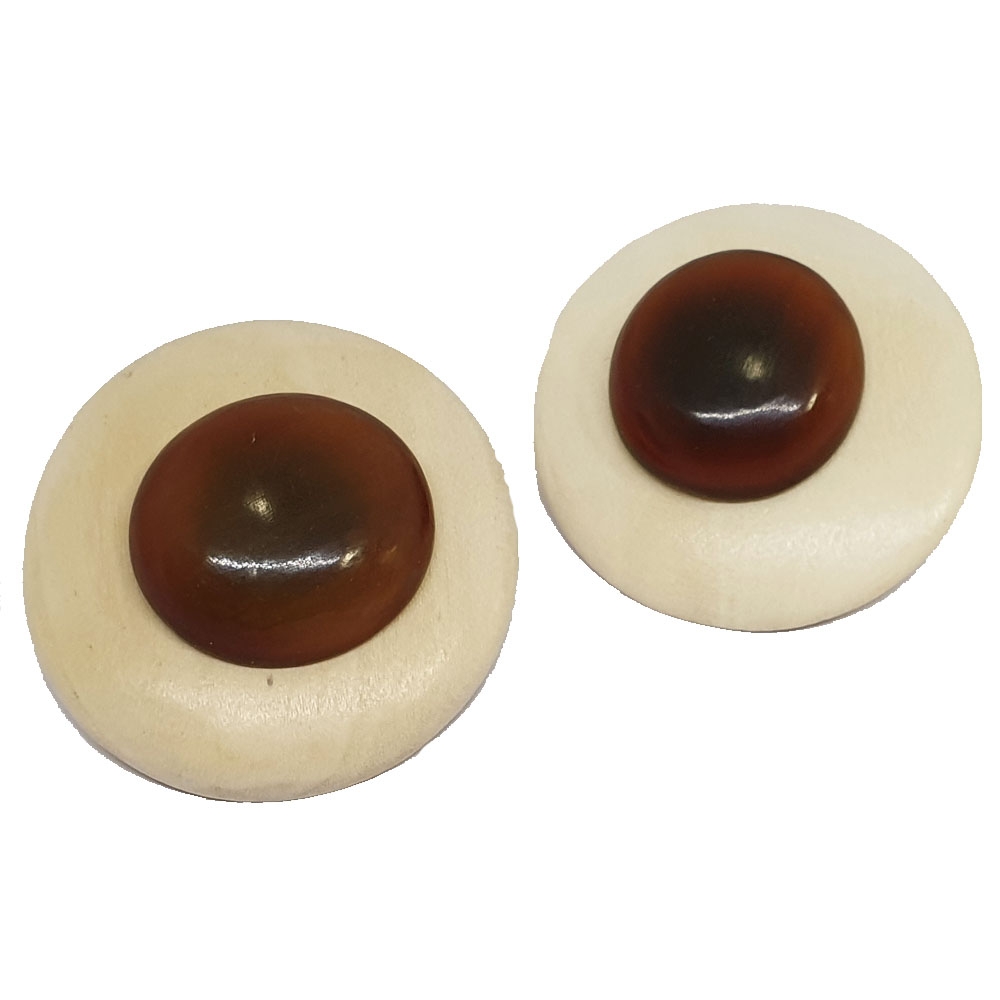 Μεγάλα κυκλικά ξύλινα κλιπ σκουλαρίκια με μελί charm