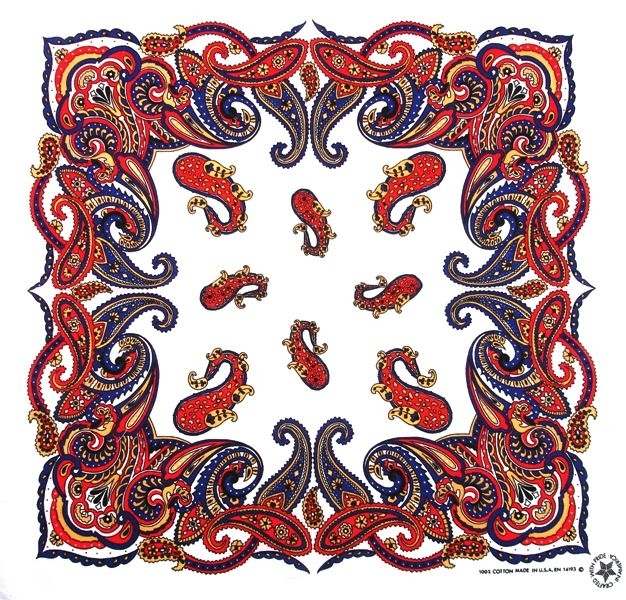 Λευκή Αμερικάνικη βαμβακερή μπαντάνα με κόκκινο και μπλε λαχούρ σχέδιο