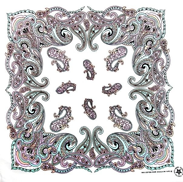 Λευκή Αμερικάνικη βαμβακερή μπαντάνα με ροζ και βεραμάν λαχούρ σχέδιο