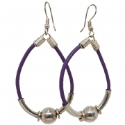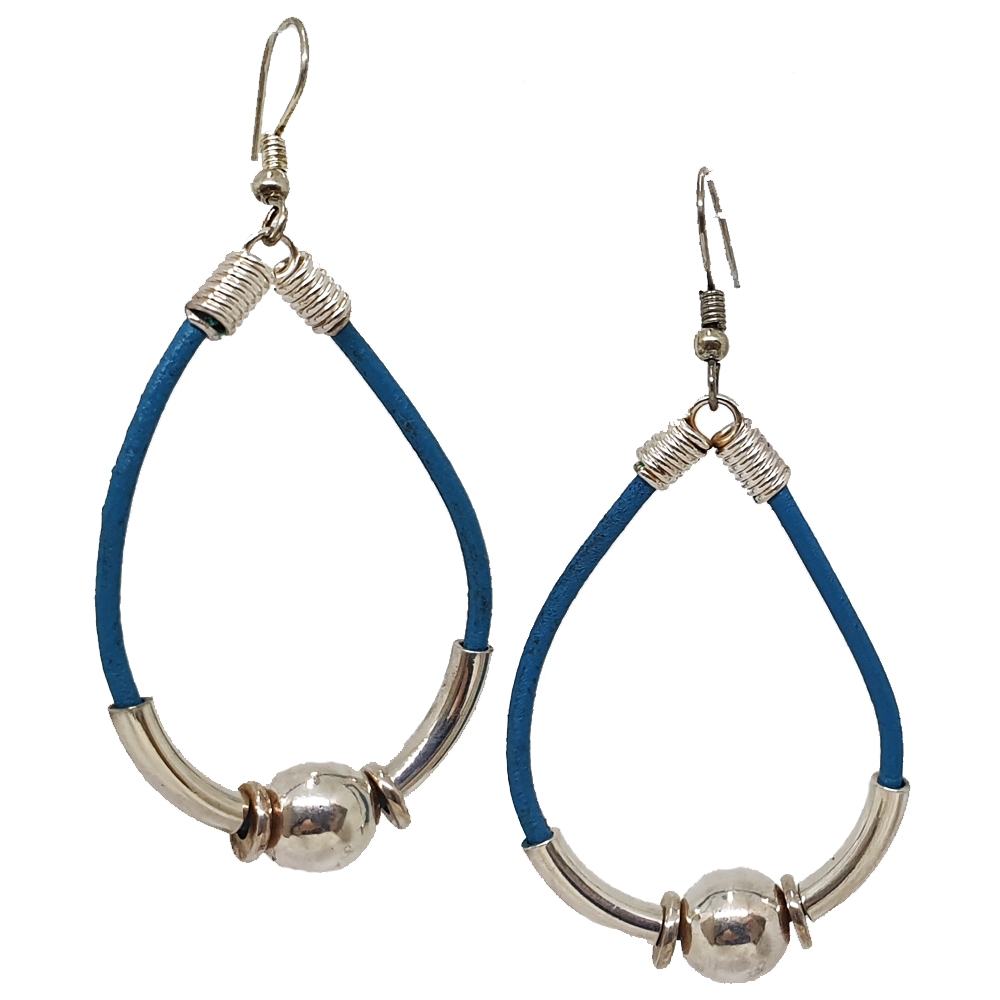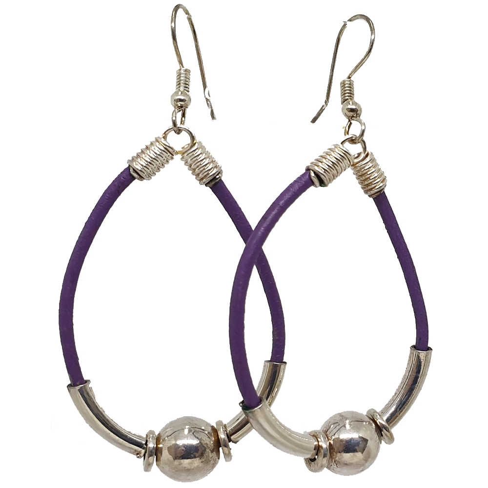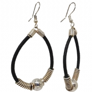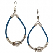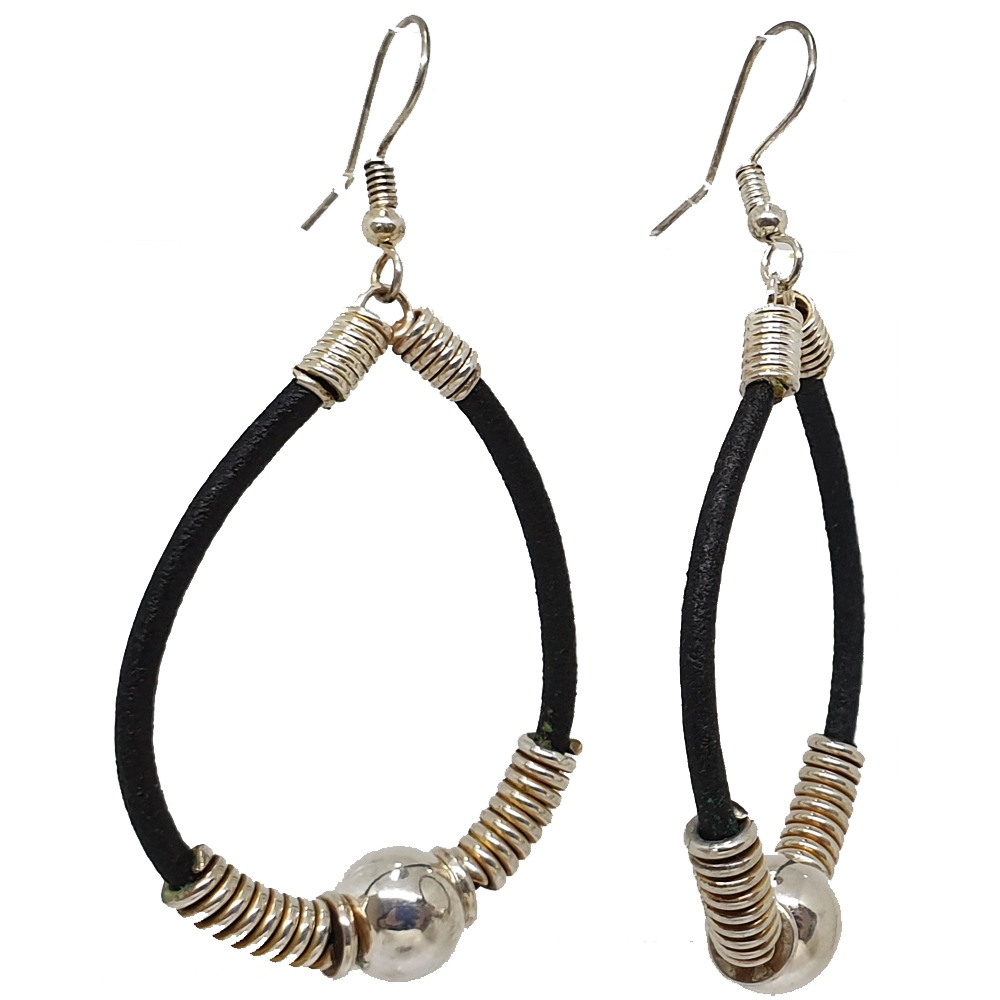 Σκουλαρίκια θηλιά από δέρμα και ασημί μεταλλικά στοιχεία