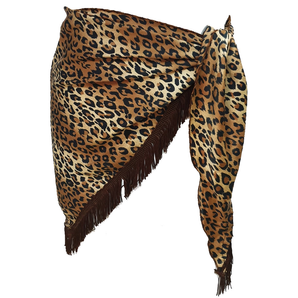 Κάμελ animal print τρίγωνο Ιταλικό φουστάκι παρεό με καφέ κρόσσια