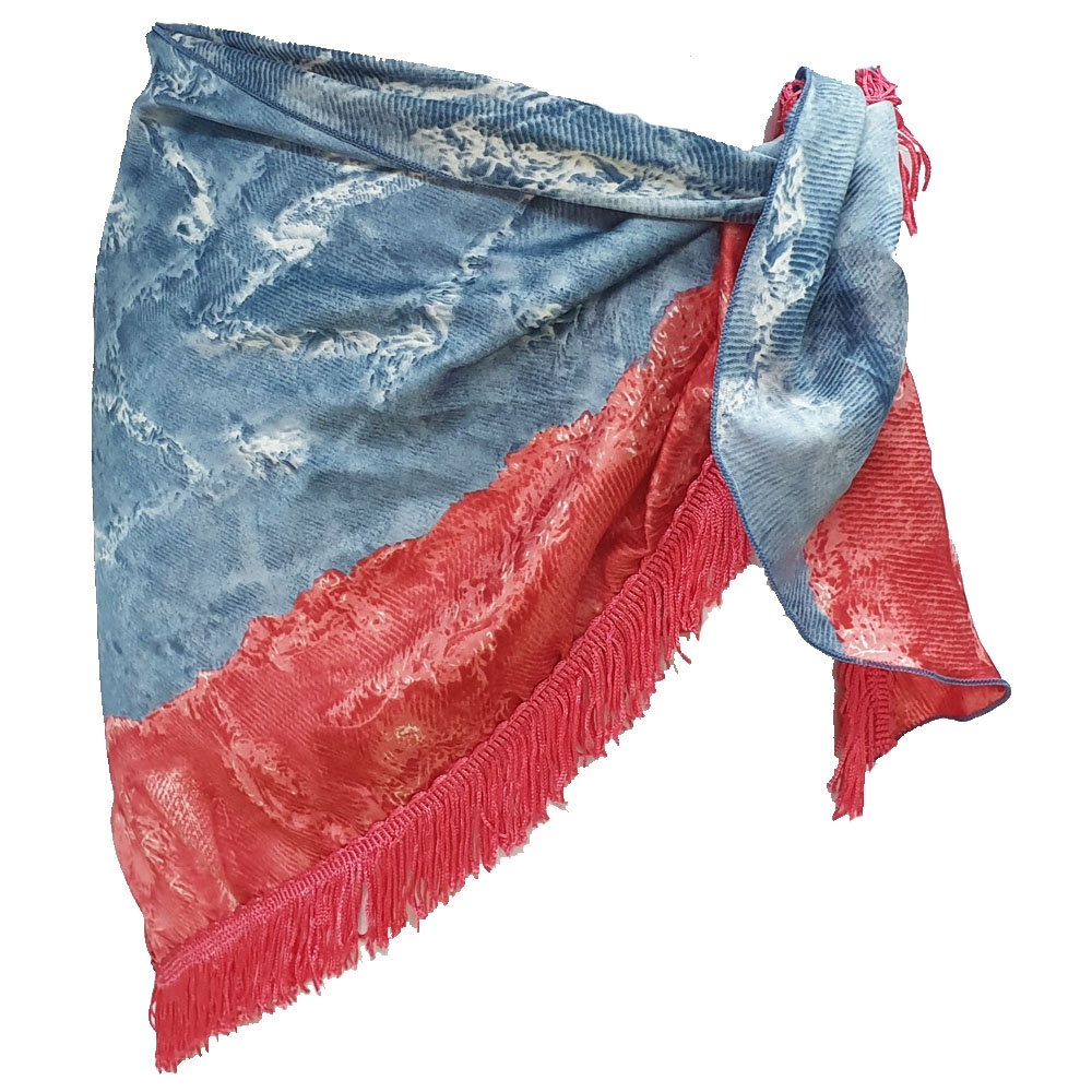 Γκρι μπλε τρίγωνο Ιταλικό φουστάκι παρεό με κόκκινη μπορντούρα και κρόσσια