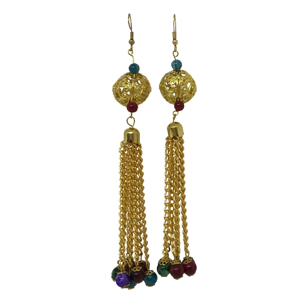 Χρυσά σκουλαρίκια με μακριές αλυσίδες και χρωματιστές πέτρες