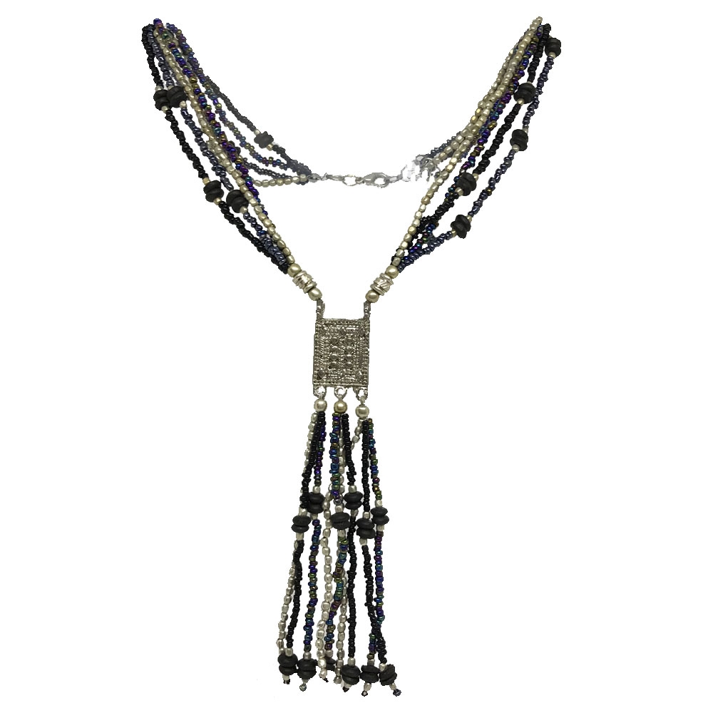 Κολιέ με μαύρες, ασημί και ανθρακί χάντρες και ασημί κρεμαστό