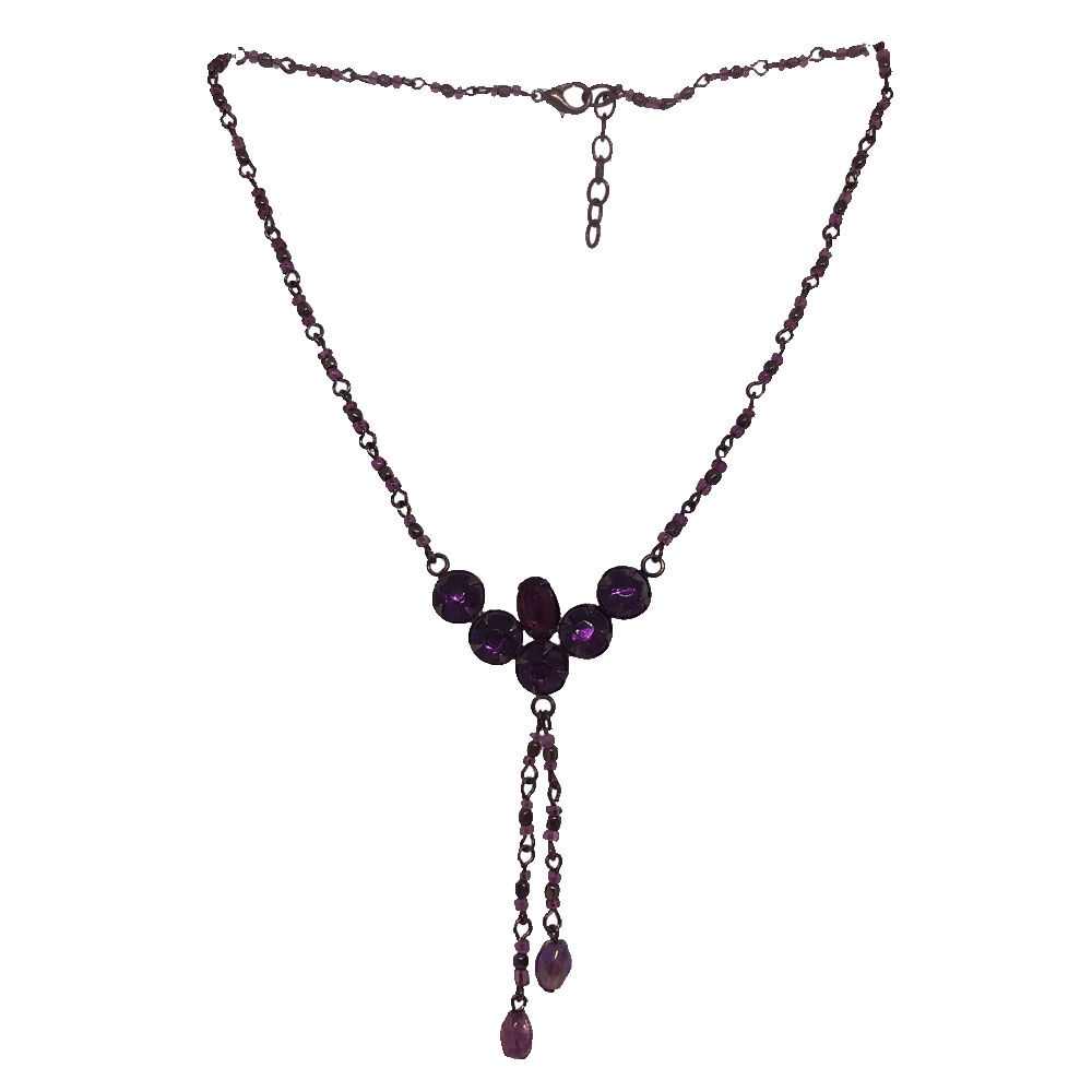 Μαύρη αλυσίδα κολιέ με κρεμαστά μωβ κρύσταλλα
