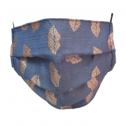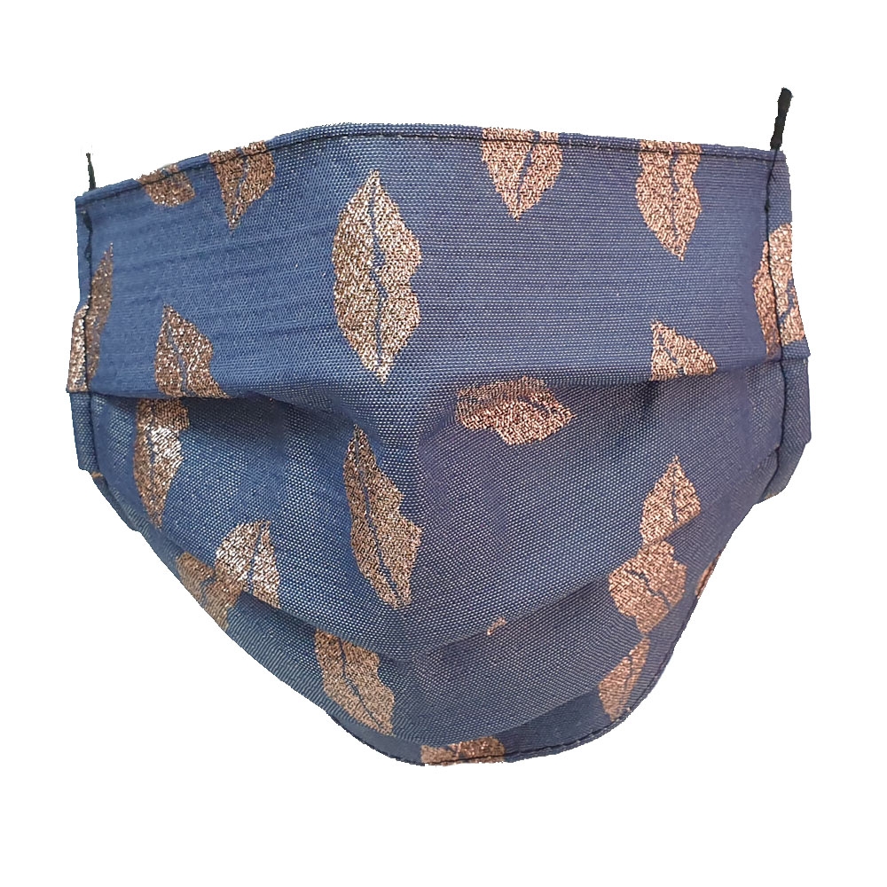Ιταλική μπλε μάσκα με ροζ lurex χειλάκια από αδιάβροχο ύφασμα φιλτραρίσματος αέρα