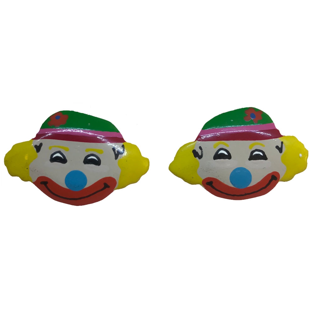 Ξύλινα clip παιδικά σκουλαρίκια κλόουν με πράσινο καπέλο