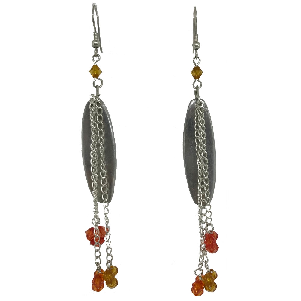 Σκουλαρίκια με μακριές αλυσίδες, ασημί οβάλ chatm και ταμπά χάντρες