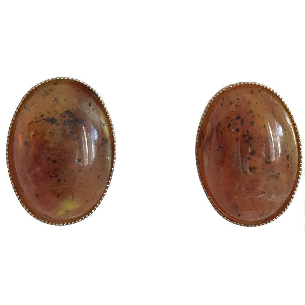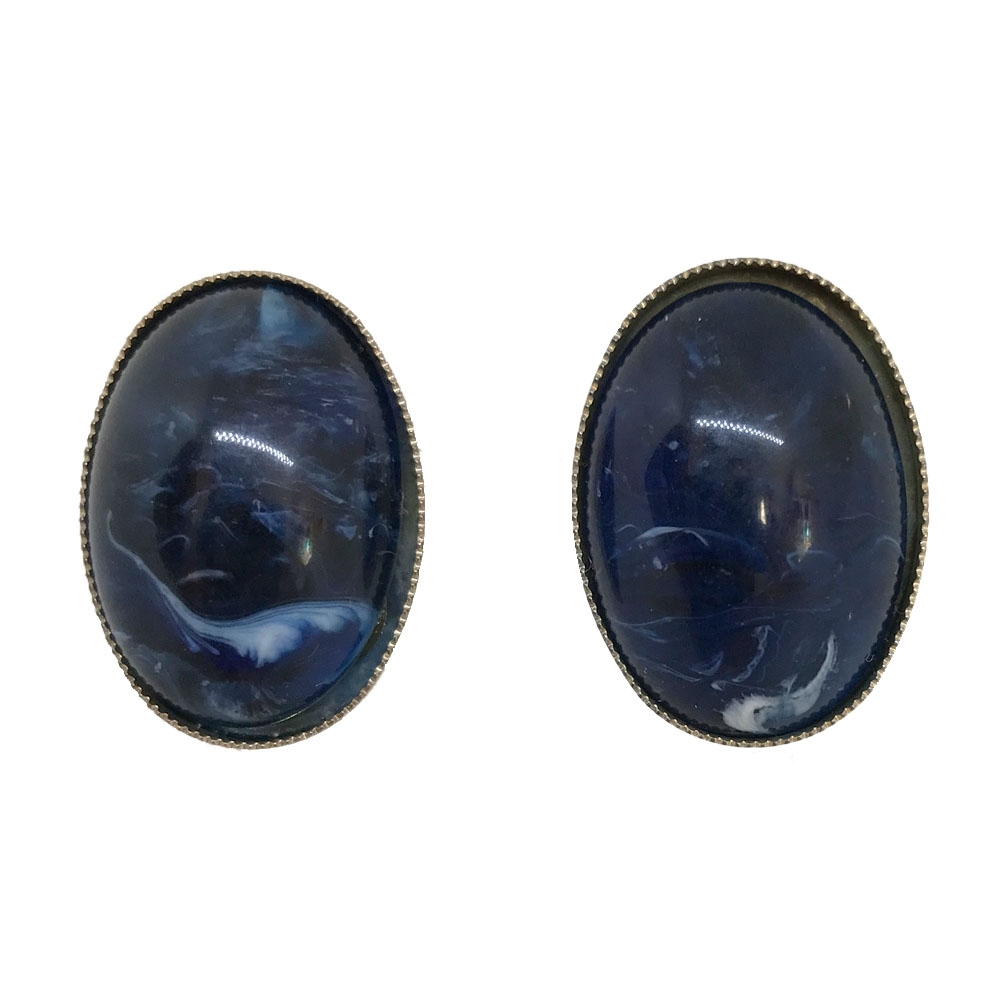 Οβάλ κλιπ σκουλαρίκια Marble με ασημί βάση