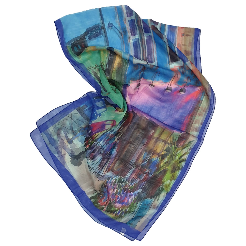 Ιταλικό indigo blue φαρδύ φουλάρι City life