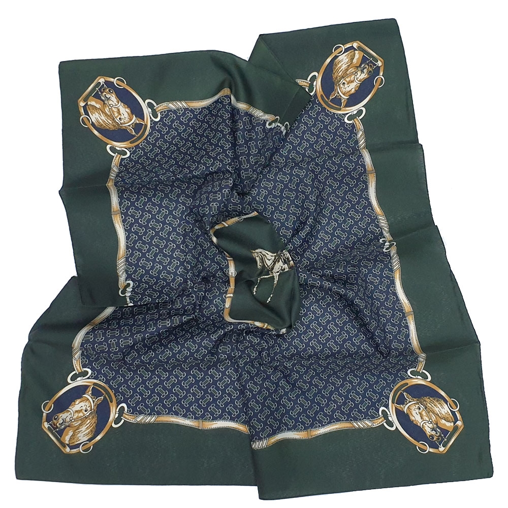 Κυπαρισσί και μπλε Ιταλική matte μαντήλα με μουσταρδί Horse prints